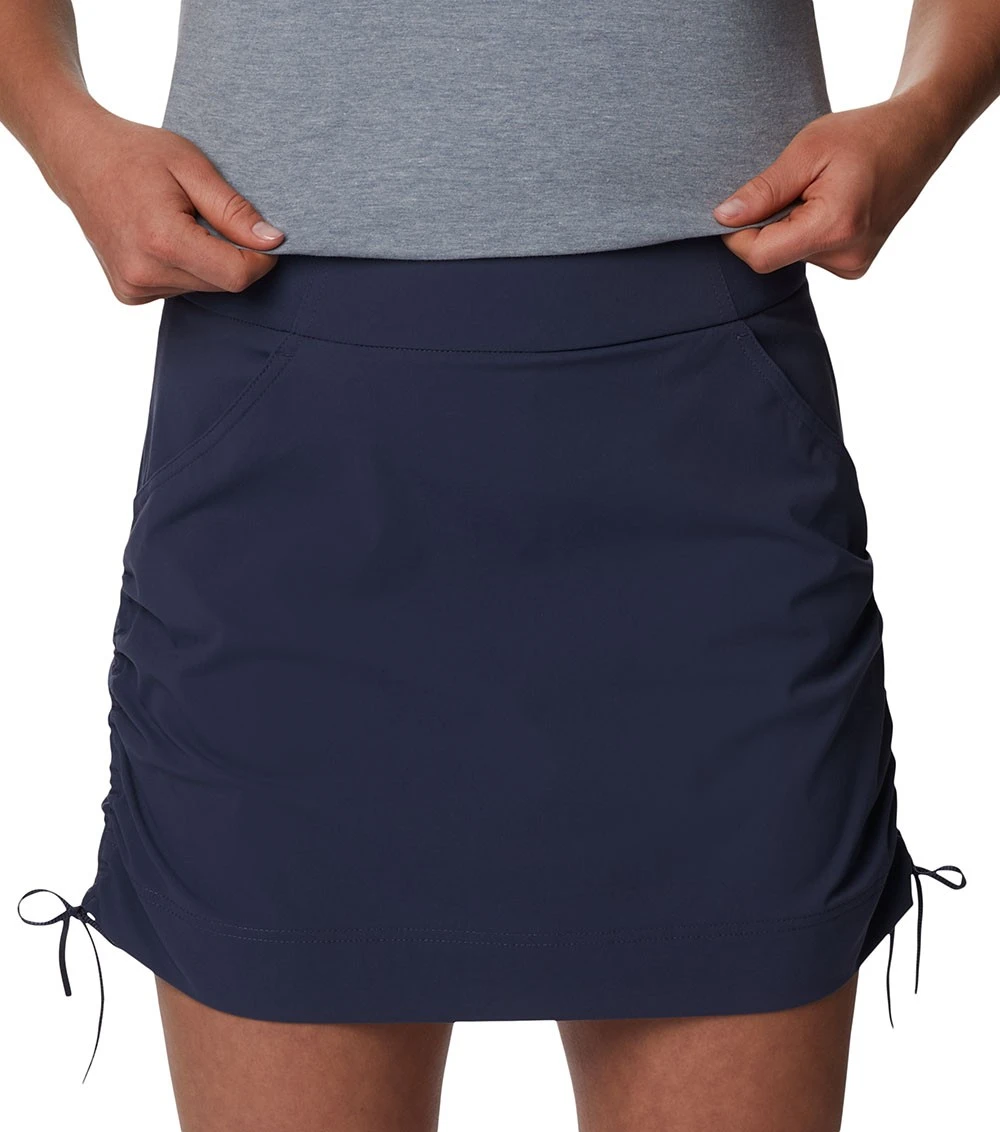 This mid-rise skort delivers rain-and-stain repellency and UPF 50 sun