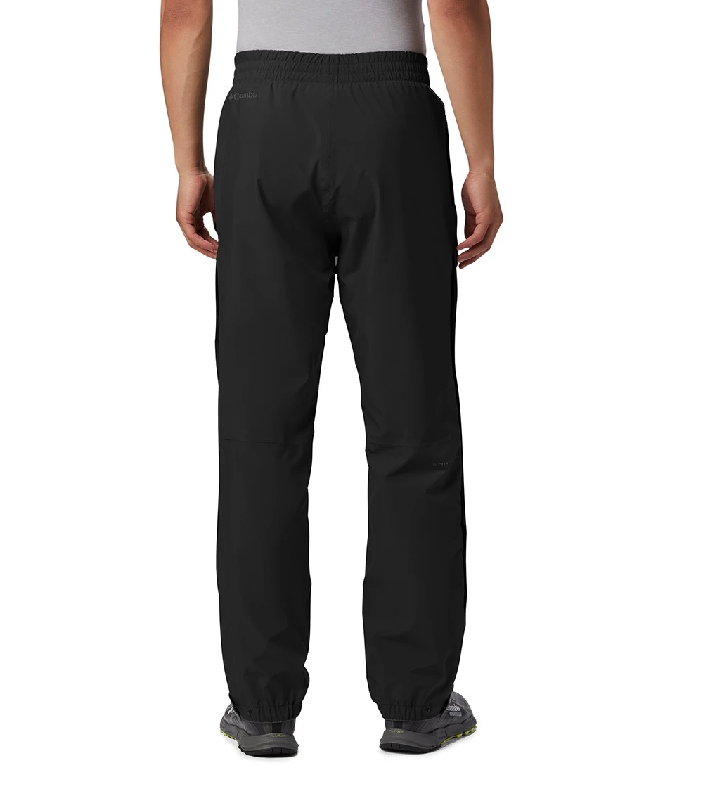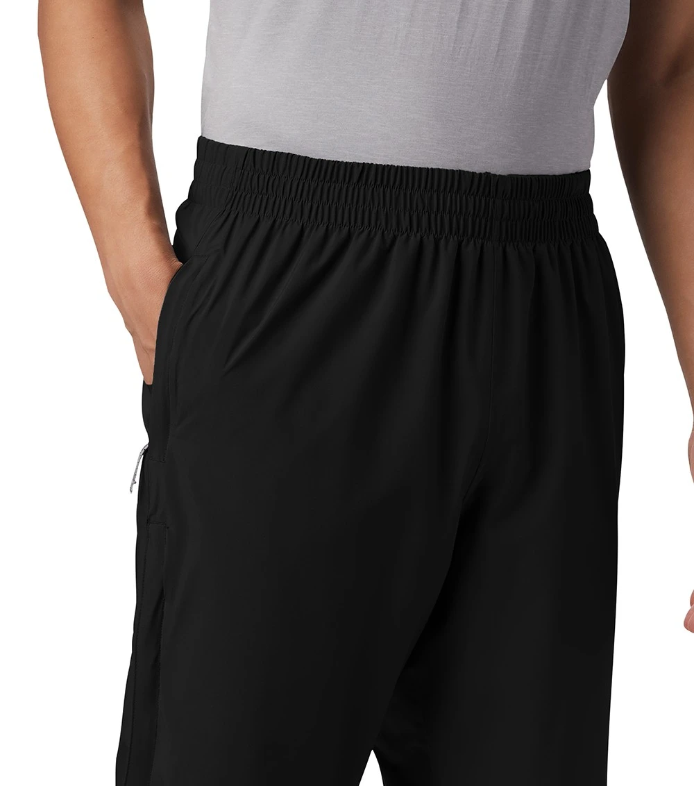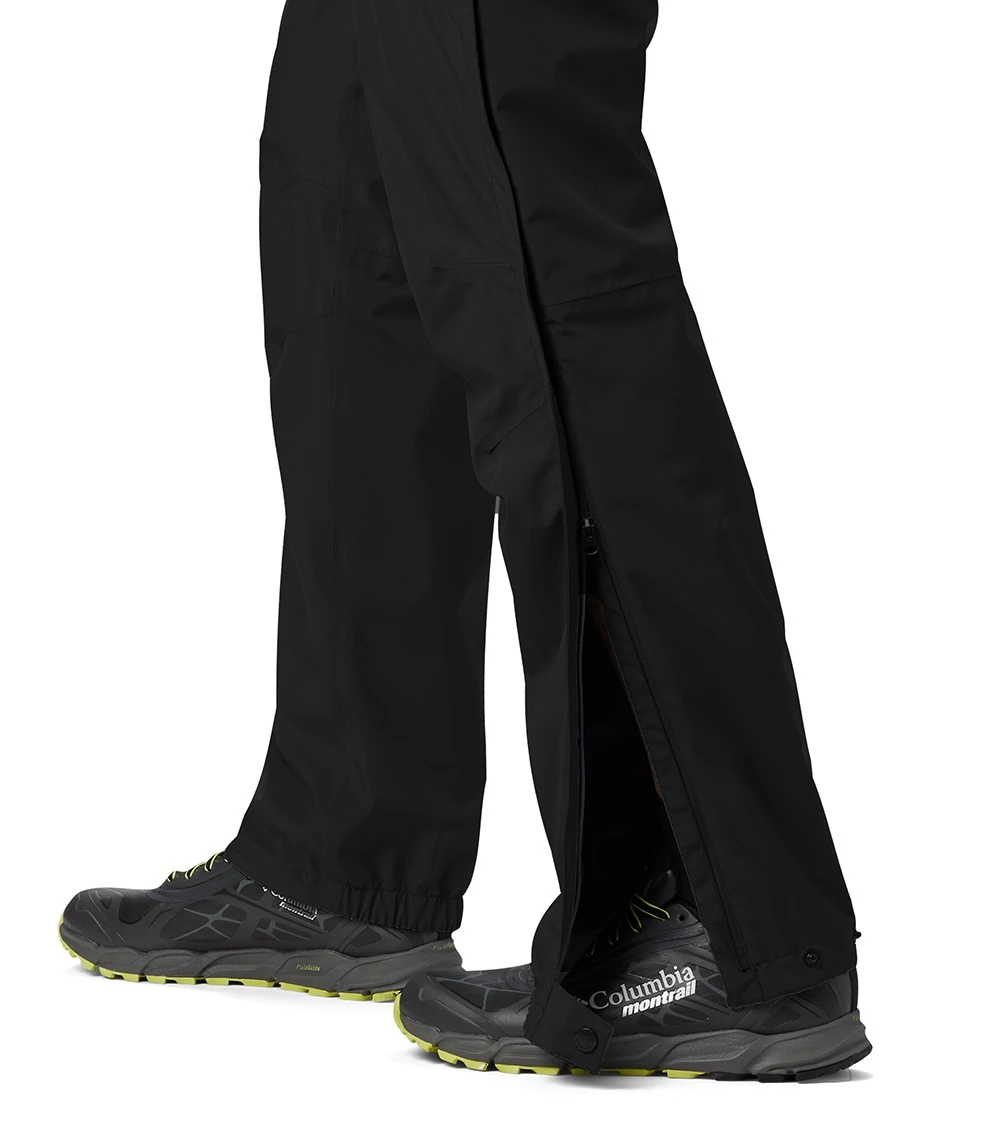 seam-sealed pants include leg vents, a zip-up pocket, and an elastic waist.